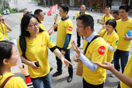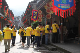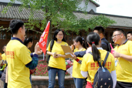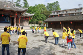 古鎮(zhèn)通關活動結束,拓展第二關---攀爬楠竹山,為增加趣味性,到達終點后還需返回到陽平觀中尋找神秘人,先行取得神秘人簽名者獲勝。隨著裁判一聲令下,3組隊員從起點出發(fā),沿盤山小徑一路向上,爭相向終點跑去。各隊組員友愛合作,互相鼓勁助威,最后多潘隊全隊率先達到終點,幾經(jīng)周折找到隱藏在陽平觀內(nèi)的神秘人,獲得本次活動的第一名。